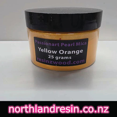 Make your Art pop with our High Grade Yellow Orange Mica Passionart range of solid pearl pigment powders. Our Passionart mica powders come in various sizes of mica particles, allowing you to colour your resin with stunning pearling effects. Use a small amount of Passionart powder and build up the colour to your liking. From translucent to a solid opaque colour, the colour options are endless. Try to mix powders from others in our collection to create your distinctive colour result for your Resin Art Works.